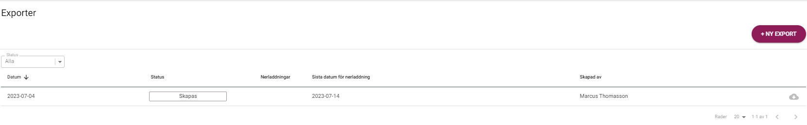 - Välj "Ny export"
