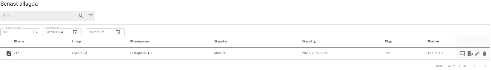 Förvaltaren har också möjlighet att använda sökfunktionen för att filtrera filerna baserat på specifika kriterier. Det inkluderar möjligheten att söka efter filer som har lagts till under en specifik tidsperiod och även om filen har en kommentar kopplad till den.