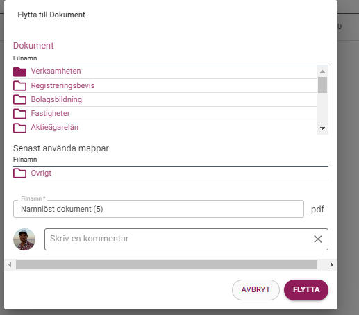 - Om du vill att dokumentet ska visas för styrelsen på startsidan, skriv en kommentar i kommentarsfältet för dokumentet.