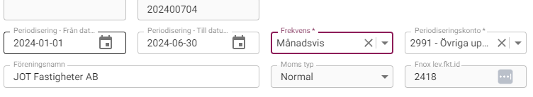Det är viktigt att användaren anger korrekta start- och slutdatum för periodiseringen, så att de stämmer överens med vald periodiseringsfrekvens.