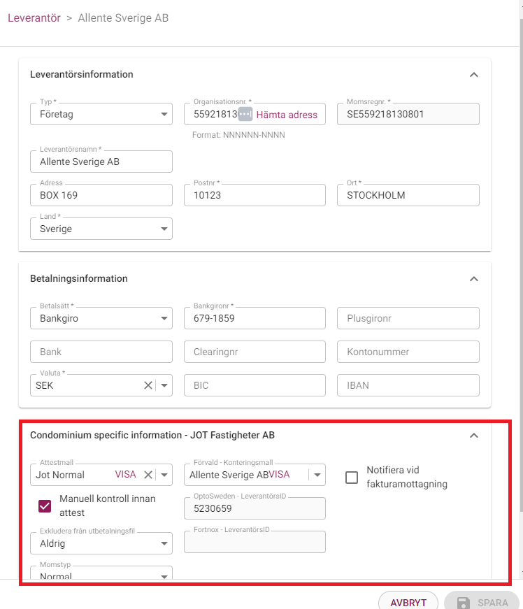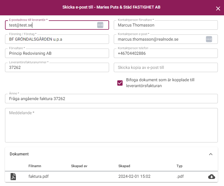 Här visas alla leverantörsfakturor som har hanterats för förvaltaren eller kunden.