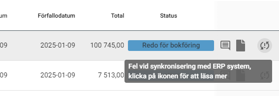 Fakturor som är Redo för bokföring har vanligtvis en kommentar som förvaltaren bör läsa innan bokföring sker. Fakturor med felmeddelanden från Fortnox visas också som Redo för bokföring, och användaren måste då läsa och åtgärda dessa fel innan fakturan kan bokföras