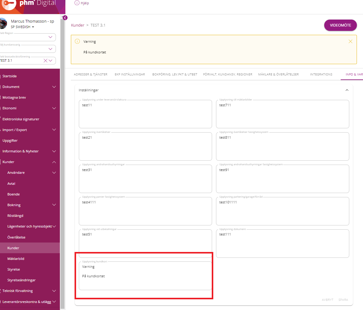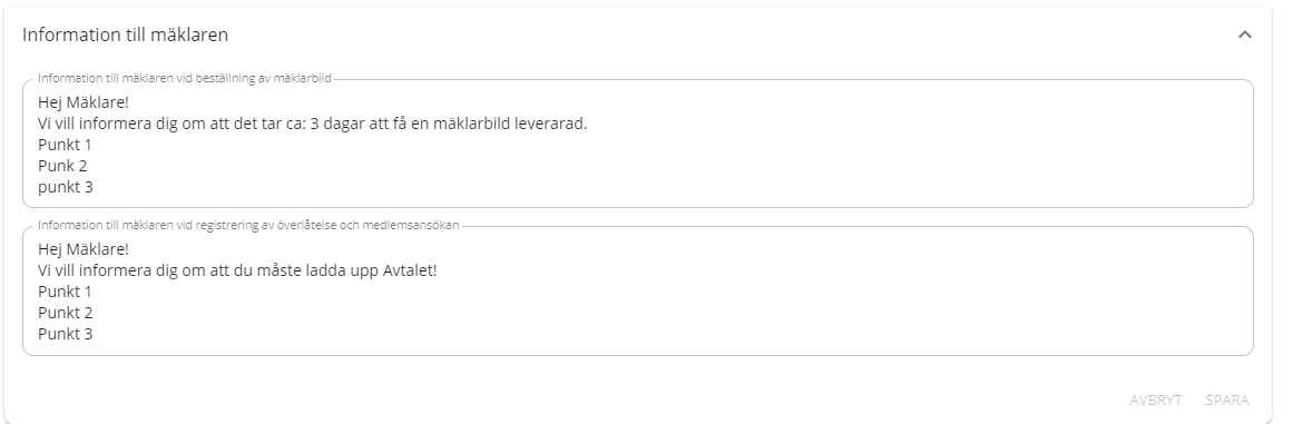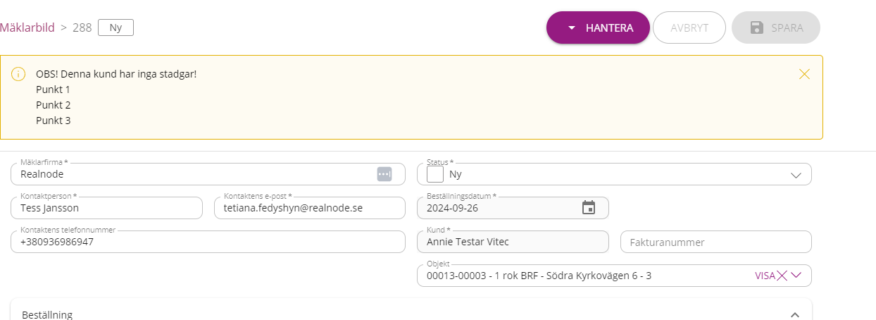 Även på mäklarbilden så kan ni på förvaltningen skriva kundunika upplysningar och varningar som visas inne på mäklarbilden.