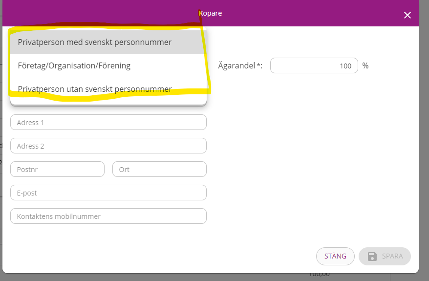 Tidigare har det bara gått att registrera köpare med svenskt personnummer. Från och med version 3.1 så kommer det även gå att registrera köpare som är Företag/Organisation/Förening och Personer som saknar svenskt personnummer.