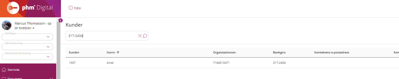 Vi har nu lagt till möjligheten att söka på bankgironummer direkt i kundlistan. Observera att sökningen kräver att du placerar "-" på rätt ställe i bankgironumret.