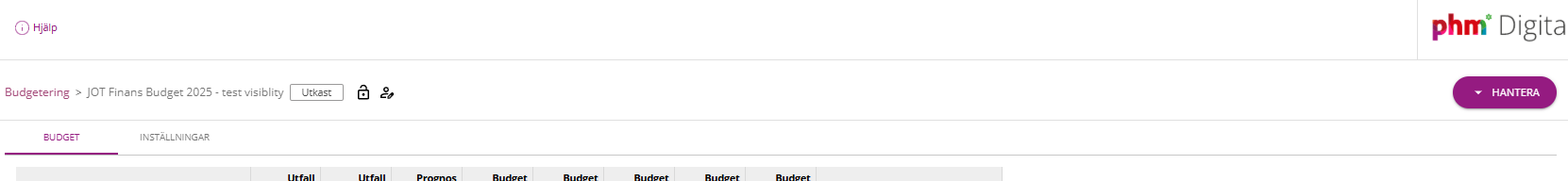- Alla aktiva rader kopieras till budgetuppföljningsfunktionen i PHM Digital.