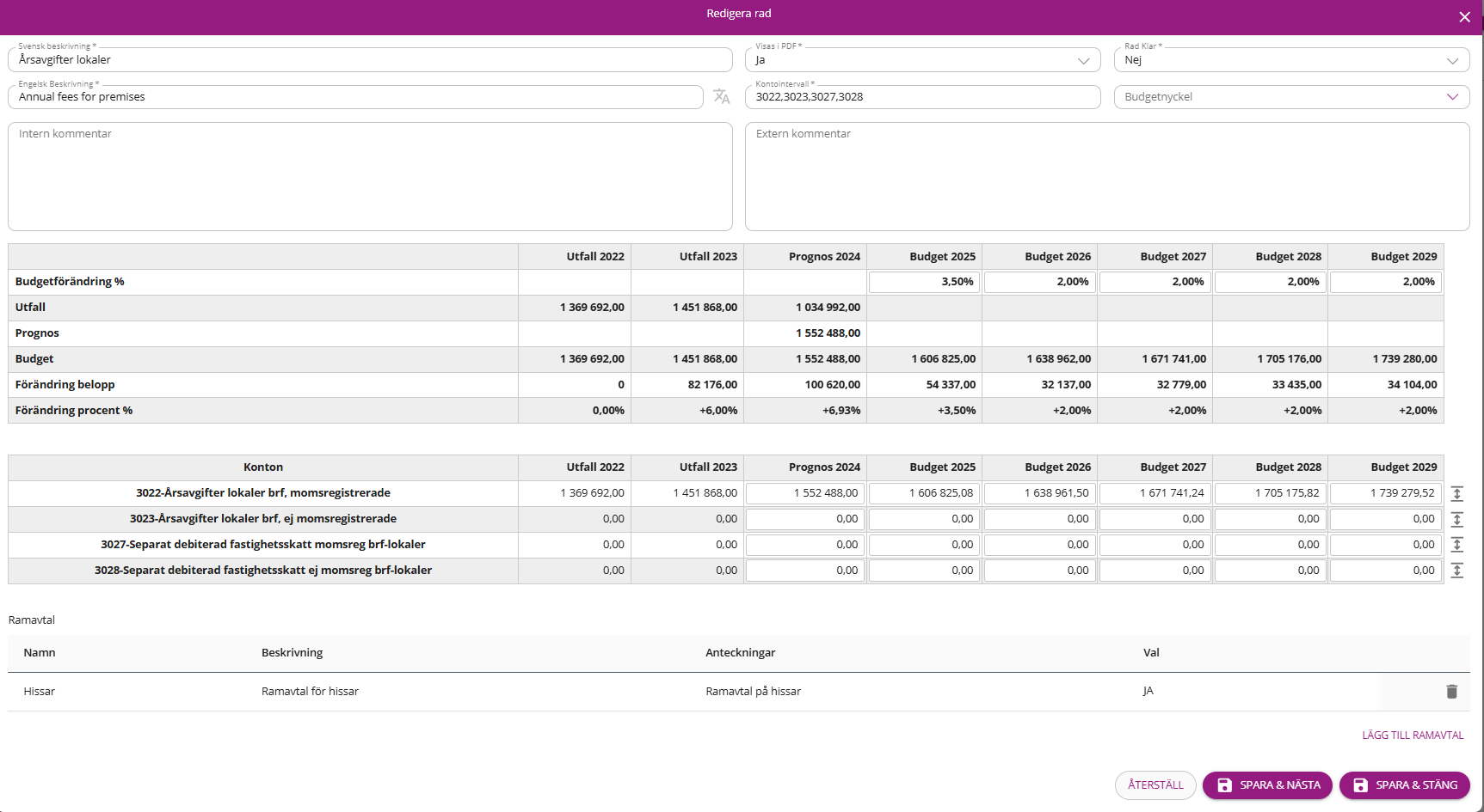 - Synlig för kund: Visar om budgeten syns för kunden i styrelseportalen.