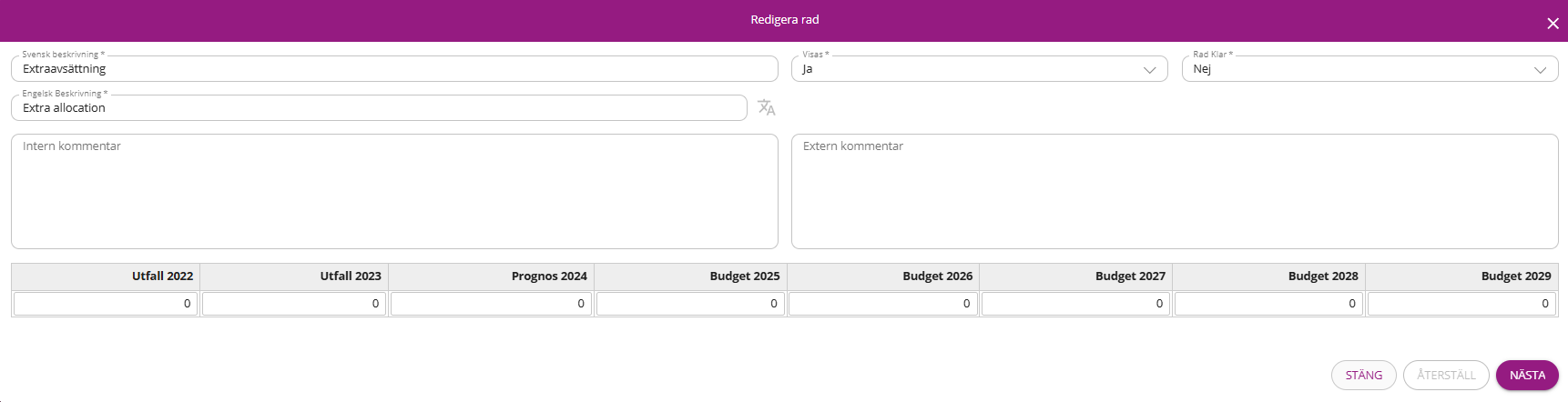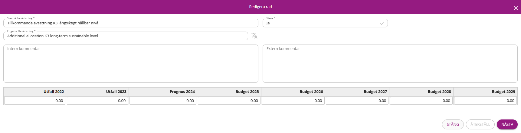 - Värde är det enda fältet som går att ändra direkt i budgeten