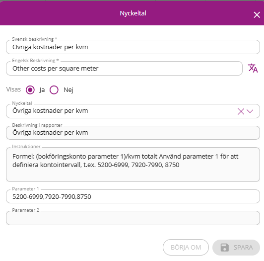 - Exempel: "Långsiktigt hållbart resultat exkl. avskrivningar" är ett nyckeltal anpassat för BRF och kan vara irrelevant för AB.