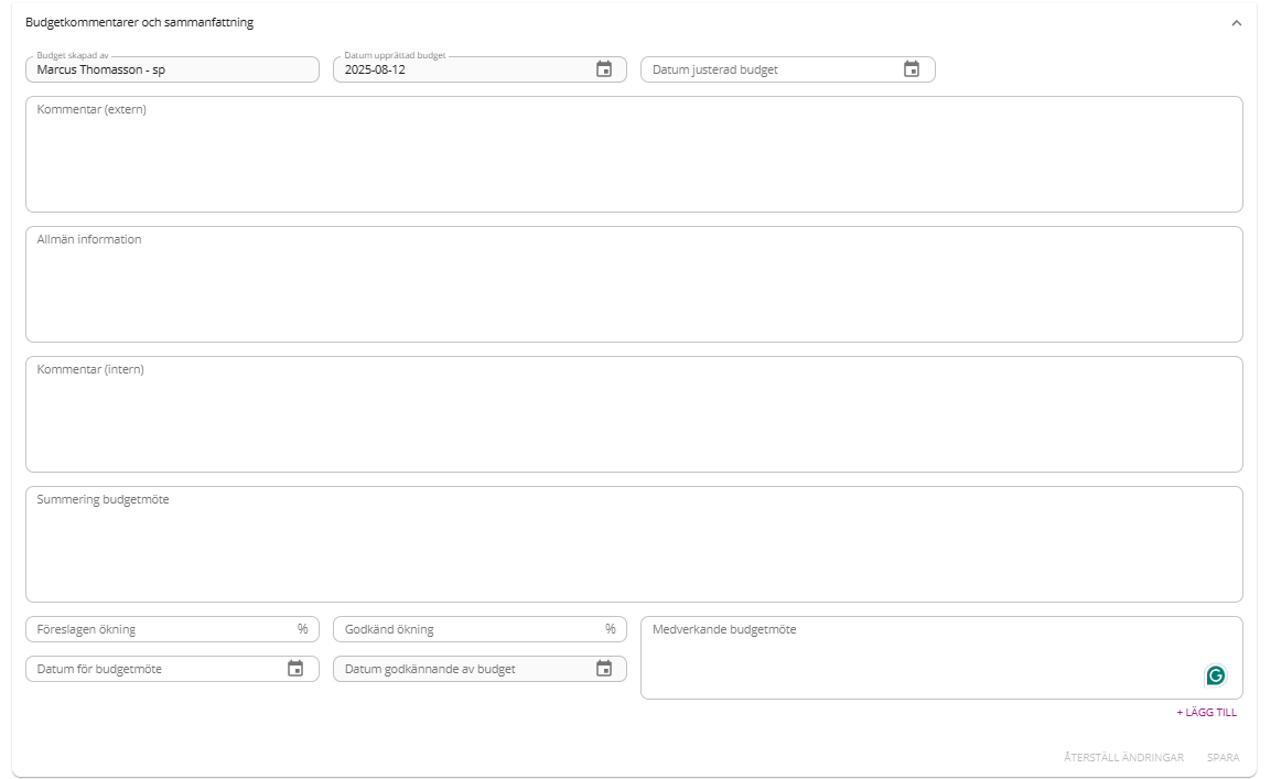 - Låst: Visar om budgeten är låst och inte kan redigeras.