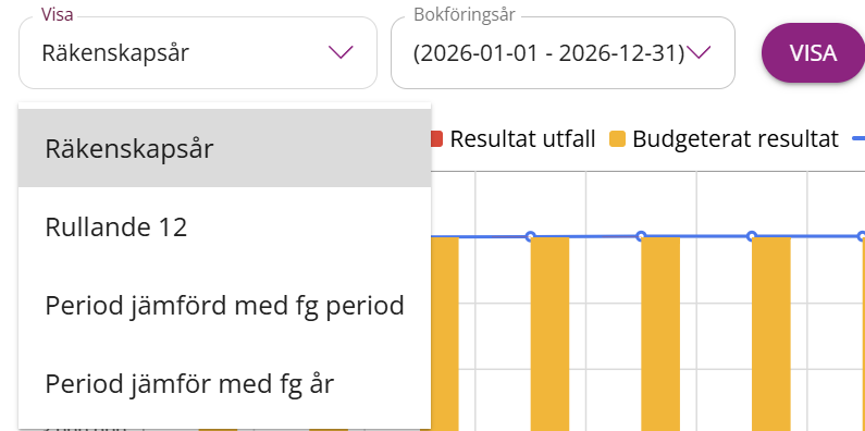 - Rullande 12: Visar de senaste 12 månaderna bakåt från dagens datum.