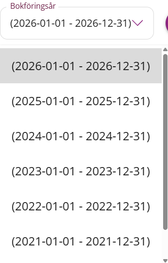 - Bokföringsår: Välj det specifika år eller den tidsperiod du vill granska (t.ex. 2026-01-01 till 2026-12-31).